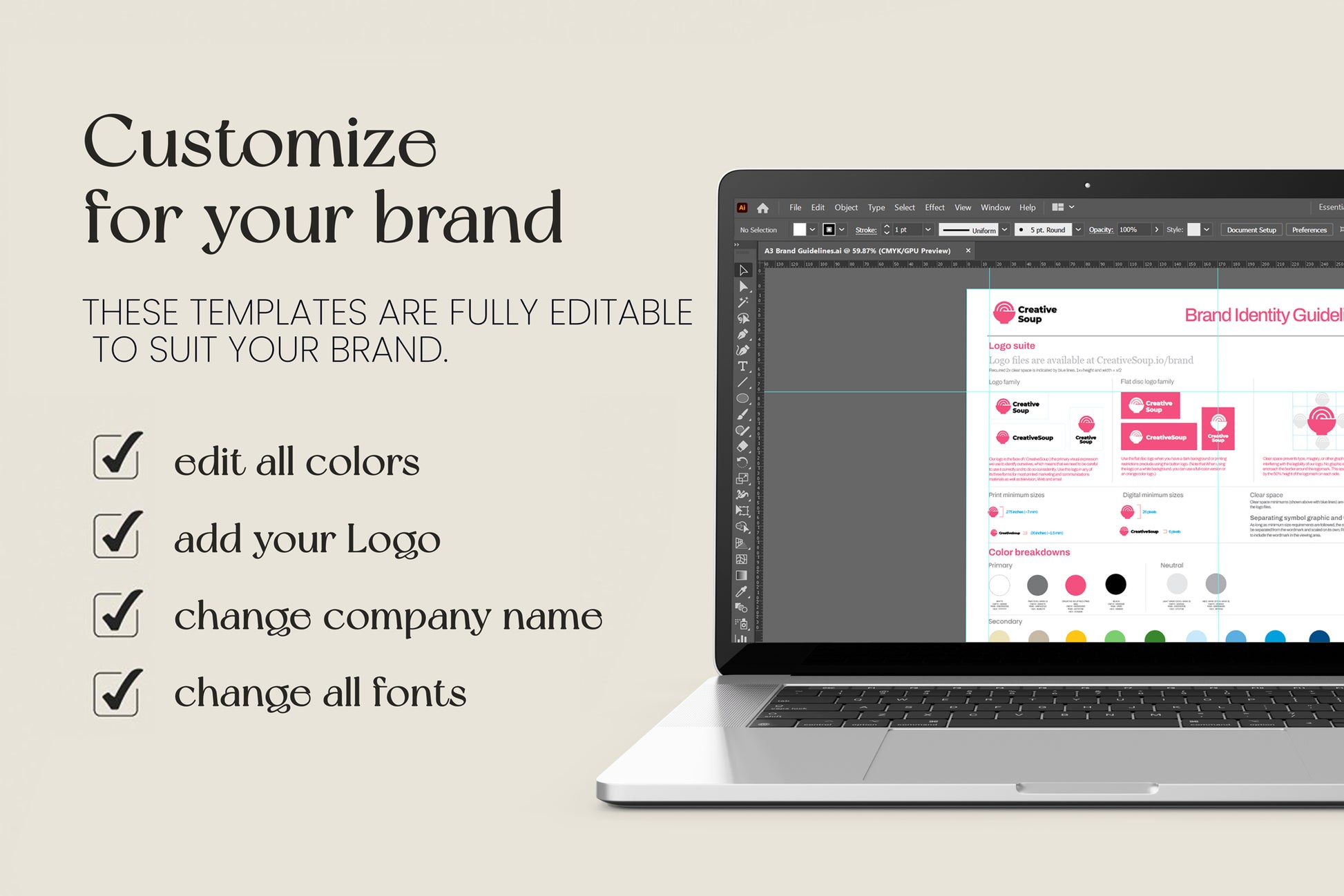 That's why we created This template. We've prepared fully-designed, ready-to-use, highly-customizable template files that you can simply open, edit, and send to your clients. Adjusting the typography, grid, and color scheme is incredibly easy. You'll get the templates in native InDesign, and Adobe illustrator.