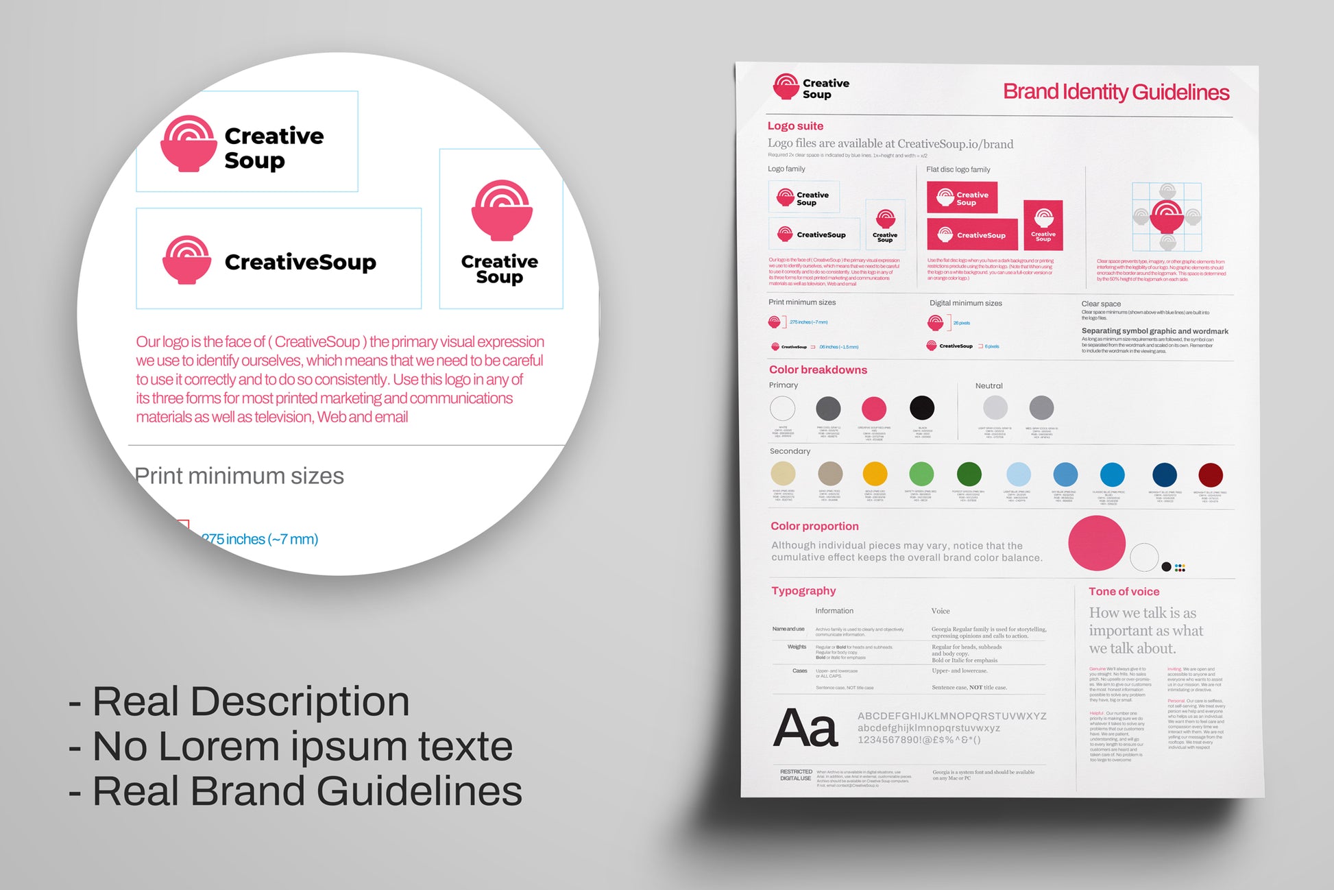 The only problem is until now the Majority of offered brand guidelines do not include a real description of the brand elements, they just lorem ipsum text. they may have some clear description but most often than not the design and layout are not up to part.